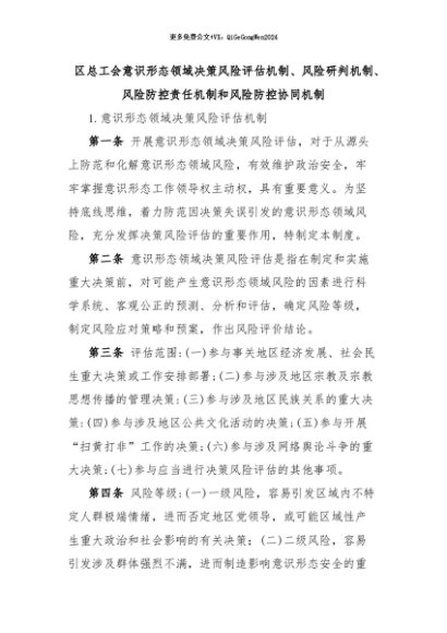 【七哥公文】2024年:区总工会意识形态领域决策风险评估机制、风险研判机制、风险防控责任机制和风险防控协同机制+更多免费公文+VX:QiGeGongWen2024