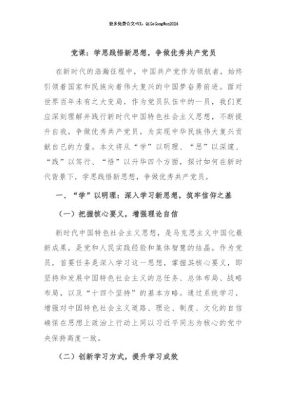 / 【七哥公文】2024年:党课:学思践悟新思想,争做优秀共产党员+更多免费公文+VX:QiGeGongWen2024