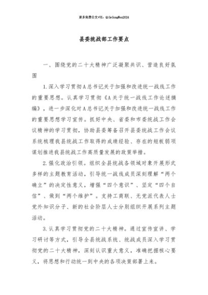 / 【七哥公文】2024年:县委统战部工作要点+更多免费公文+VX:QiGeGongWen2024