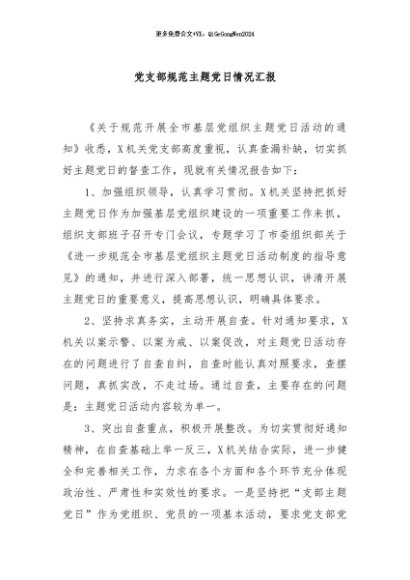 / 【七哥公文】2024年:党支部规范主题党日情况汇报+更多免费公文+VX:QiGeGongWen2024