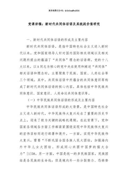 / 【七哥公文】2024年:党课讲稿:新时代共同体话语及其统战价值研究+更多免费公文+VX:QiGeGongWen2024