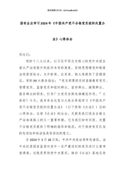 【七哥公文】2024年:国有企业学习2024年《中国共产党不合格党员组织处置办法》心得体会+更多免费公文+VX:QiGeGongWen2024