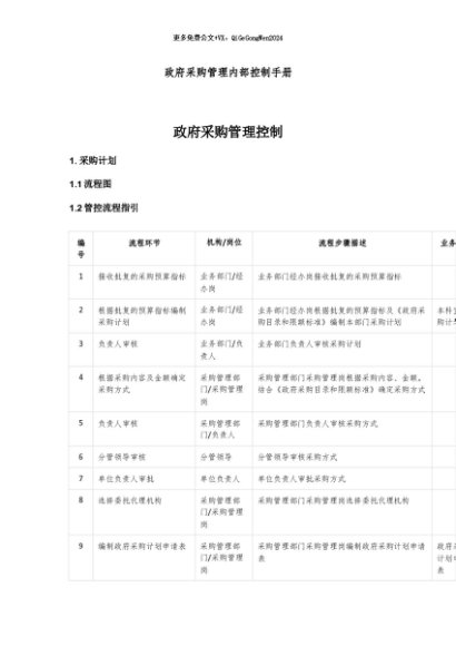 / 【七哥公文】2024年:政府采购管理内部控制手册+更多免费公文+VX:QiGeGongWen2024