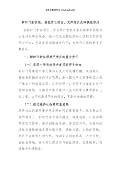 / 【七哥公文】2024年:新时代新征程,强化责任担当,发挥党员先锋模范作用+更多免费公文+VX:QiGeGongWen2024