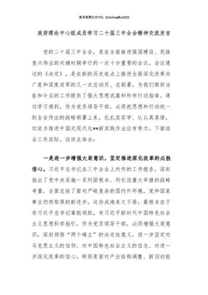 / 【七哥公文】2024年:政府理论中心组成员学习二十届三中全会精神交流发言+更多免费公文+VX:QiGeGongWen2024