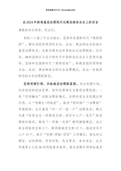 【七哥公文】2024年:在2024年街道基层治理现代化建设推进会会上的发言+更多免费公文+VX:QiGeGongWen2024