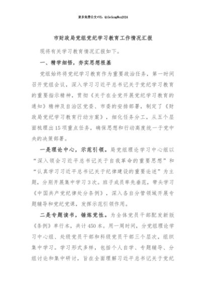 / 【七哥公文】2024年:市财政局党组党纪学习教育工作情况汇报+更多免费公文+VX:QiGeGongWen2024