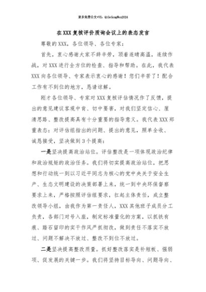 / 【七哥公文】2024年:在XXX复核评价质询会议上的表态发言+更多免费公文+VX:QiGeGongWen2024