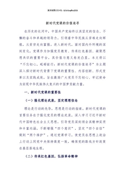 / 【七哥公文】2024年:新时代党课的价值追寻+更多免费公文+VX:QiGeGongWen2024