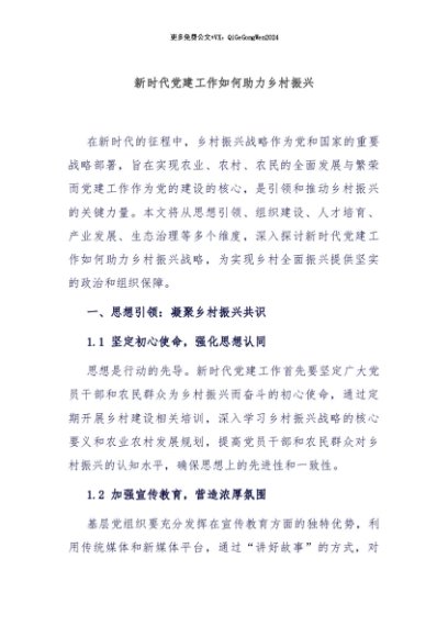 / 【七哥公文】2024年:新时代党建工作如何助力乡村振兴+更多免费公文+VX:QiGeGongWen2024