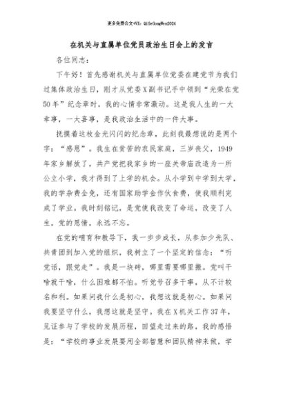 / 【七哥公文】2024年:在机关与直属单位党员政治生日会上的发言+更多免费公文+VX:QiGeGongWen2024