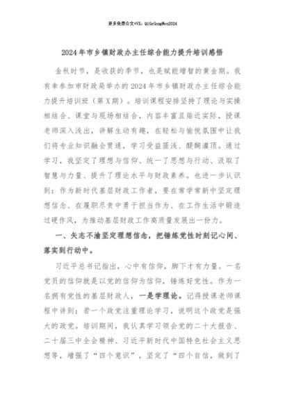 / 【七哥公文】2024年:2024年市乡镇财政办主任综合能力提升培训感悟+更多免费公文+VX:QiGeGongWen2024