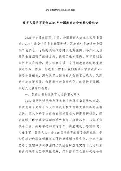 【七哥公文】2024年:教育人员学习贯彻2024年全国教育大会精神心得体会+更多免费公文+VX:QiGeGongWen2024