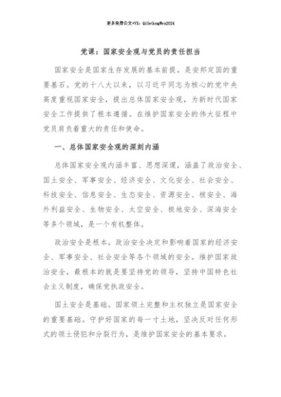 / 【七哥公文】2024年:党课:国家安全观与党员的责任担当+更多免费公文+VX:QiGeGongWen2024