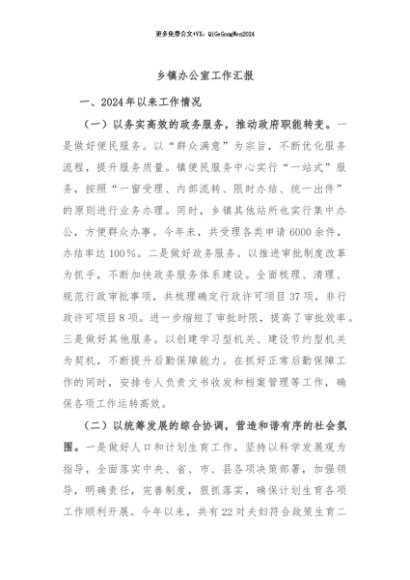/ 【七哥公文】2024年:乡镇办公室工作汇报+更多免费公文+VX:QiGeGongWen2024