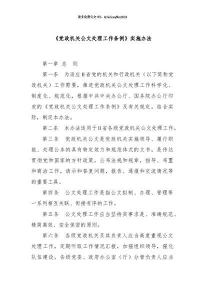 / 【七哥公文】2024年:《党政机关公文处理工作条例》实施办法+更多免费公文+VX:QiGeGongWen2024