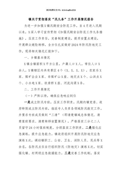 / 【七哥公文】2024年:镇关于贯彻落实“汛九条”工作开展情况报告+更多免费公文+VX:QiGeGongWen2024
