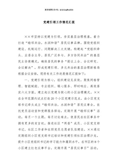 / 【七哥公文】2024年:党建引领工作情况汇报+更多免费公文+VX:QiGeGongWen2024