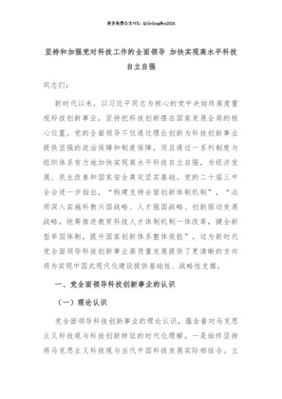 【七哥公文】2024年:坚持和加强党对科技工作的全面领导 加快实现高水平科技自立自强+更多免费公文+VX:QiGeGongWen2024