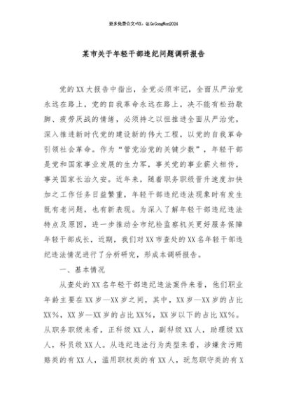 / 【七哥公文】2024年:某市关于年轻干部违纪问题调研报告+更多免费公文+VX:QiGeGongWen2024