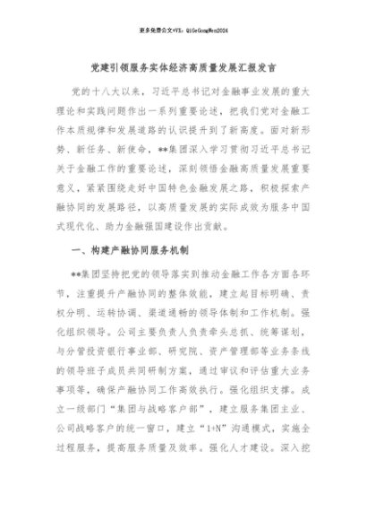 / 【七哥公文】2024年:党建引领服务实体经济高质量发展汇报发言+更多免费公文+VX:QiGeGongWen2024