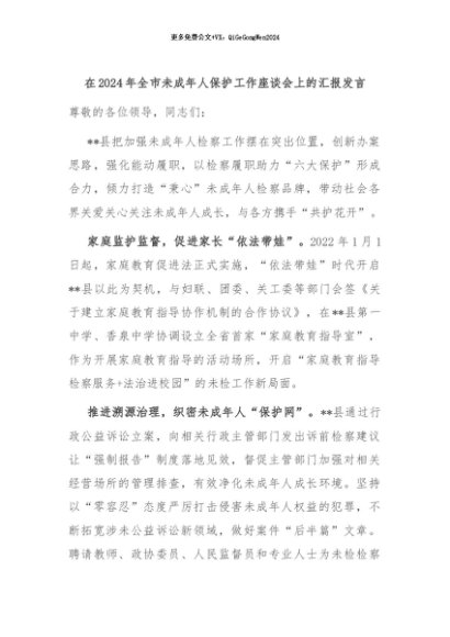 【七哥公文】2024年:在2024年全市未成年人保护工作座谈会上的汇报发言+更多免费公文+VX:QiGeGongWen2024