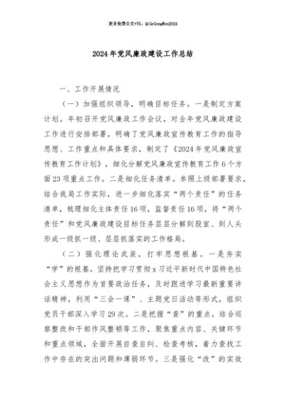 / 【七哥公文】2024年:2024年党风廉政建设工作总结+更多免费公文+VX:QiGeGongWen2024