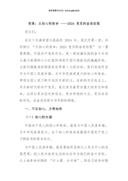 / 【七哥公文】2024年:党课:从初心到使命 ——2024 党员的奋进征程+更多免费公文+VX:QiGeGongWen2024