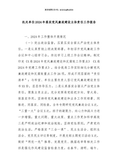 【七哥公文】2024年:机关单位2024年落实党风廉政建设主体责任工作报告+更多免费公文+VX:QiGeGongWen2024