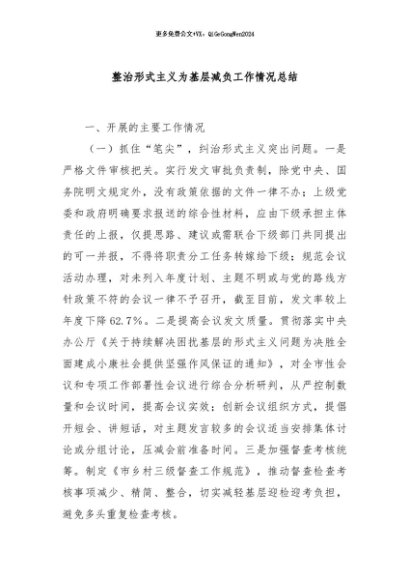 / 【七哥公文】2024年:整治形式主义为基层减负工作情况总结+更多免费公文+VX:QiGeGongWen2024