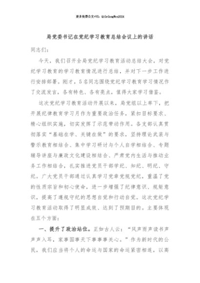 / 【七哥公文】2024年:局党委书记在党纪学习教育总结会议上的讲话+更多免费公文+VX:QiGeGongWen2024