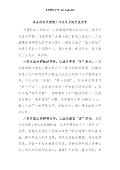 / 【七哥公文】2024年:某县在机关党建工作会议上的交流发言+更多免费公文+VX:QiGeGongWen2024