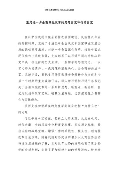 / 【七哥公文】2024年:坚定进一步全面深化改革的思想自觉和行动自觉+更多免费公文+VX:QiGeGongWen2024
