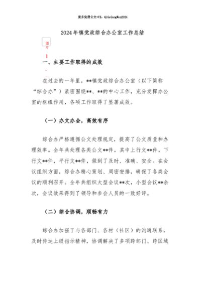 / 【七哥公文】2024年:2024年镇党政综合办公室工作总结+更多免费公文+VX:QiGeGongWen2024