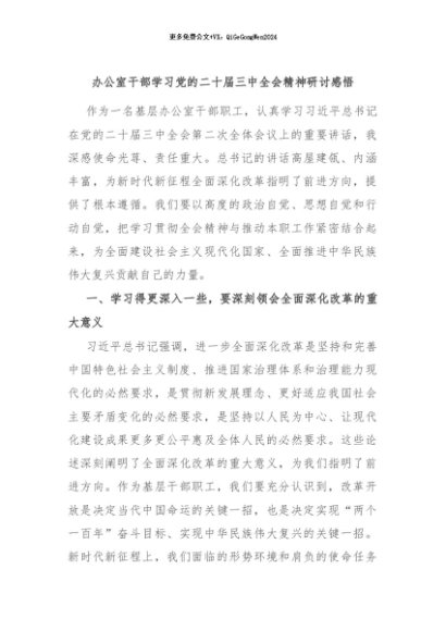 / 【七哥公文】2024年:办公室干部学习党的二十届三中全会精神研讨感悟+更多免费公文+VX:QiGeGongWen2024