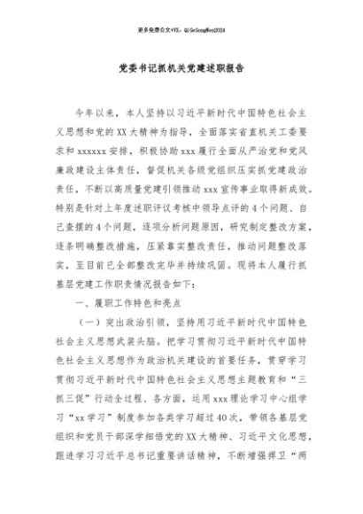 / 【七哥公文】2024年:党委书记抓机关党建述职报告+更多免费公文+VX:QiGeGongWen2024