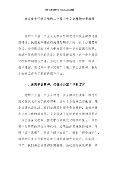 / 【七哥公文】2024年:办公室主任学习党的二十届三中全会精神心得感悟+更多免费公文+VX:QiGeGongWen2024