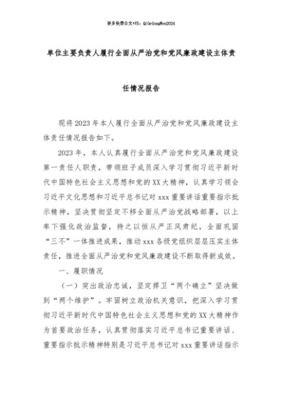 【七哥公文】2024年:单位主要负责人履行全面从严治党和党风廉政建设主体责任情况报告+更多免费公文+VX:QiGeGongWen2024