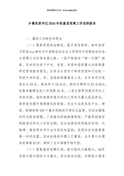/ 【七哥公文】2024年:乡镇党委书记2024年抓基层党建工作述职报告+更多免费公文+VX:QiGeGongWen2024