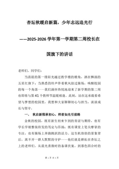 【七哥公文】2025年:2025-2026学年第一学期第二周校长在国旗下的讲话:杏坛秋暖启新篇,少年志远追光行+更多免费公文+VX:QiGeGongWen2024