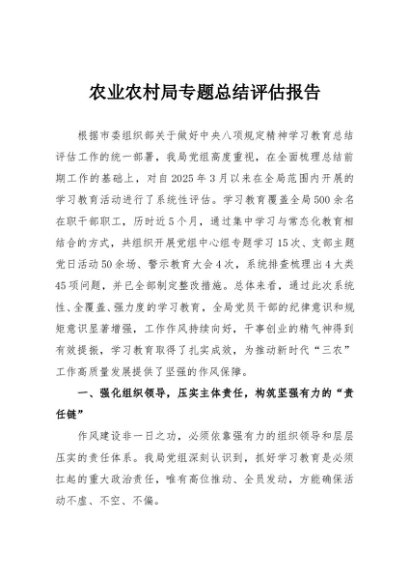 / 【七哥公文】2025年:农业农村局专题总结评估报告+更多免费公文+VX:QiGeGongWen2024