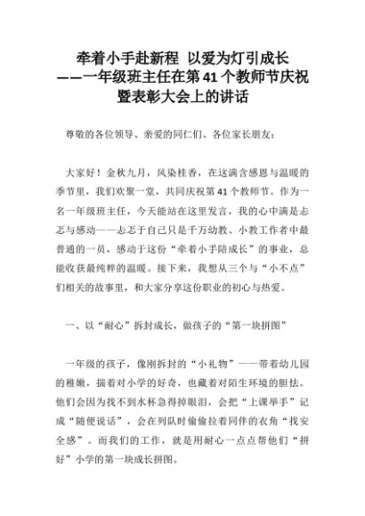 【七哥公文】2025年:牵着小手赴新程 以爱为灯引成长 ——一年级班主任在第41个教师节庆祝暨表彰大会上的讲话+更多免费公文+VX:QiGeGongWen2024
