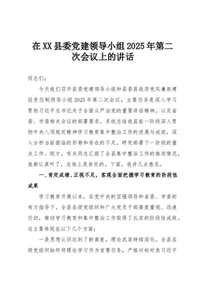 / 【七哥公文】2025年:在XX县委党建领导小组2025年第二次会议上的讲话+更多免费公文+VX:QiGeGongWen2024