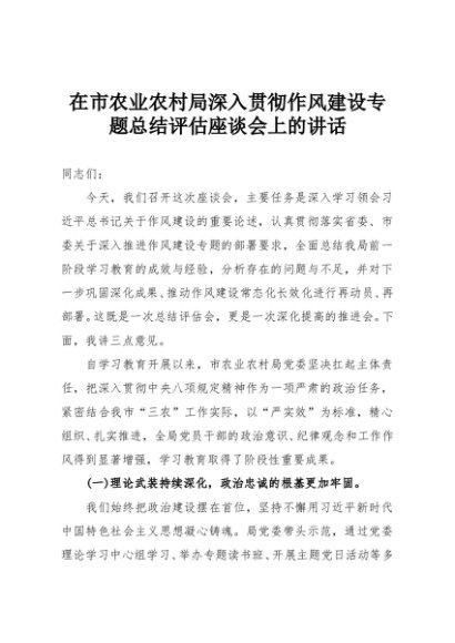 【七哥公文】2025年:在市农业农村局深入贯彻作风建设专题总结评估座谈会上的讲话+更多免费公文+VX:QiGeGongWen2024