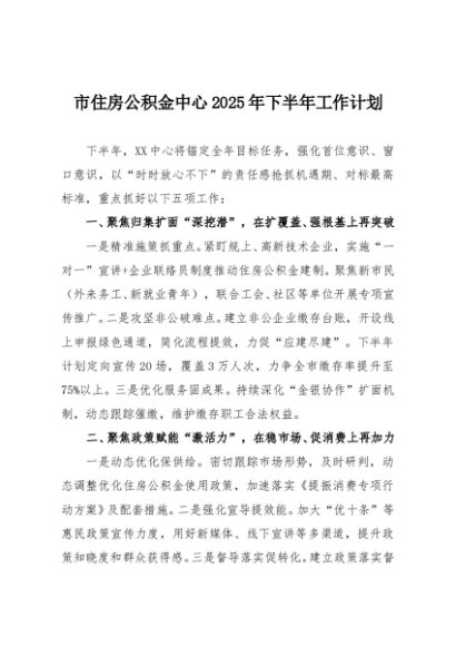 / 【七哥公文】2025年:市住房公积金中心2025年下半年工作计划+更多免费公文+VX:QiGeGongWen2024