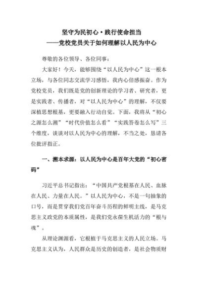 【七哥公文】2025年:坚守为民初心·践行使命担当——党校党员关于如何理解以人民为中心+更多免费公文+VX:QiGeGongWen2024