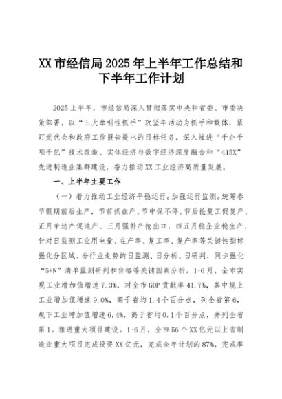 / 【七哥公文】2025年:XX市经信局2025年上半年工作总结和下半年工作计划+更多免费公文+VX:QiGeGongWen2024