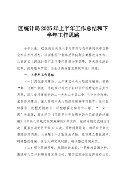 / 【七哥公文】2025年:区统计局2025年上半年工作总结和下半年工作思路+更多免费公文+VX:QiGeGongWen2024