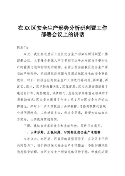 / 【七哥公文】2025年:在XX区安全生产形势分析研判暨工作部署会议上的讲话+更多免费公文+VX:QiGeGongWen2024