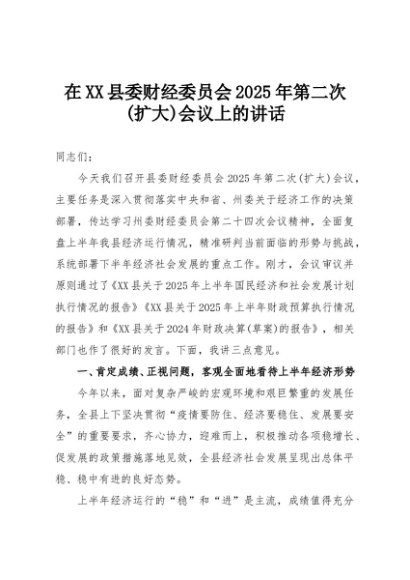 【七哥公文】2025年:在XX县委财经委员会2025年第二次(扩大)会议上的讲话+更多免费公文+VX:QiGeGongWen2024